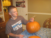 Addie and Devin carved their pumpkins together. Addie is finally getting into the fun this year. She liked to feel the inside. This will be Devin's last carvings for me because next year he will be on his mission. I will have to have Addie take his spot until he gets home. Ha ha.